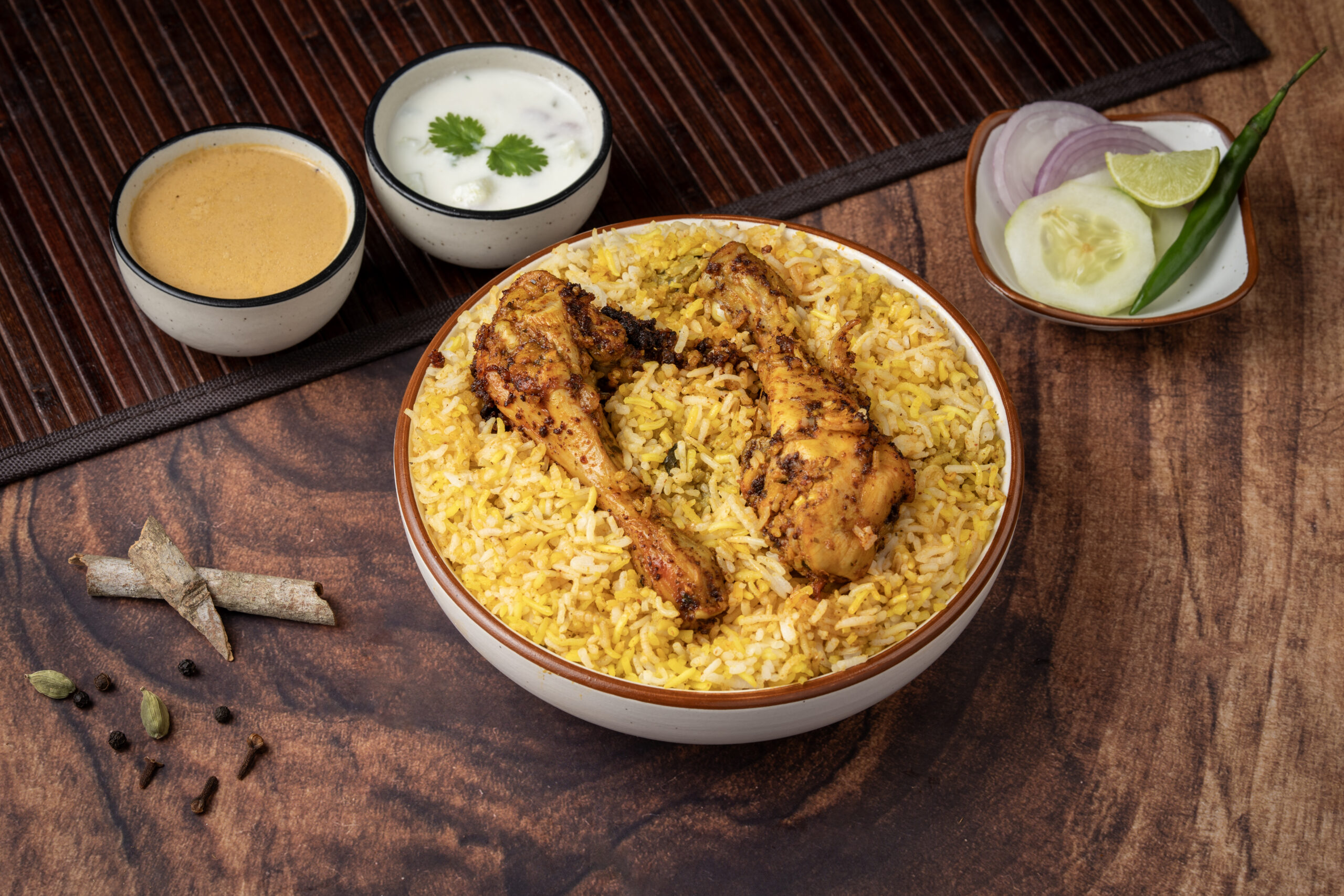 Chicken Tangdi Biryani is a flavorful rice dish made with juicy chicken drumsticks marinated in spices, yogurt, and herbs. The tangdi pieces are cooked until tender and then layered with aromatic basmati rice, fried onions, and fresh mint for rich flavor. Each bite offers soft, flavorful chicken and perfectly spiced rice. This biryani is known for its bold taste, appealing aroma, and satisfying combination of tender chicken legs and fragrant rice.