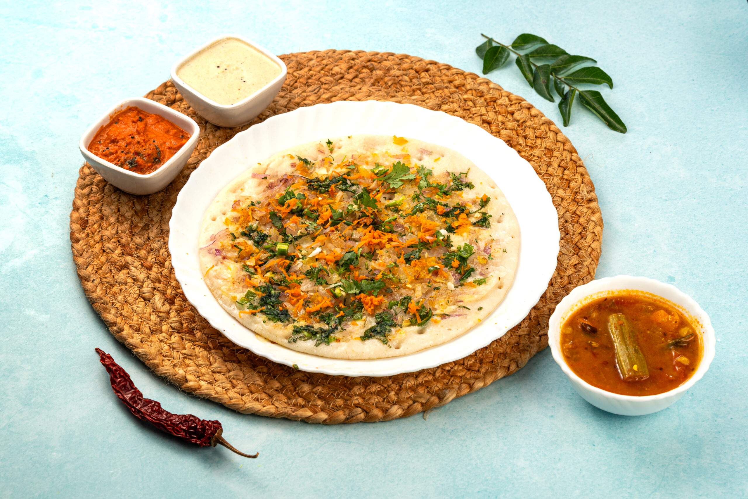 Uttapam is usually served hot with coconut chutney, tomato chutney, or sambar (a lentil-based soup). It is nutritious, easy to digest, and loved by children and adults alike. Because of its soft texture and tasty toppings, it’s often a favorite breakfast or snack in South India.